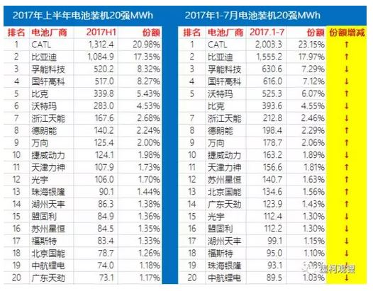 2、2017年前7個月電池裝機8.65GWh,同比增長9%