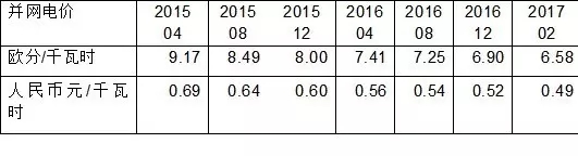 為了促使光伏發(fā)電的并網(wǎng)電價迅速下降,以減輕電力用戶的負擔,德國從2015年開始,對大型光伏地面電站實行上網(wǎng)電價招標制:最低價者中標,按中標的電力價格售電,20年不變。從2015年4月到2017年2月,在不到兩年的時間里,招標制促使德國大型地面光伏電站的并網(wǎng)電價下降了28.2%。