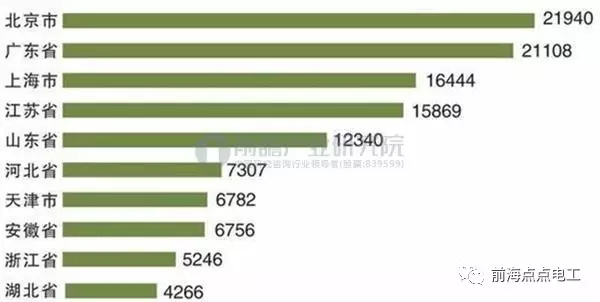 2016年各省市充電樁總量TOP10(單位:個(gè))