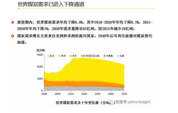 5.世界煤炭需求已進(jìn)入下降通道,2050年較2015年減少22%。其中非OECD國家煤炭需求在2030年前后達(dá)峰。