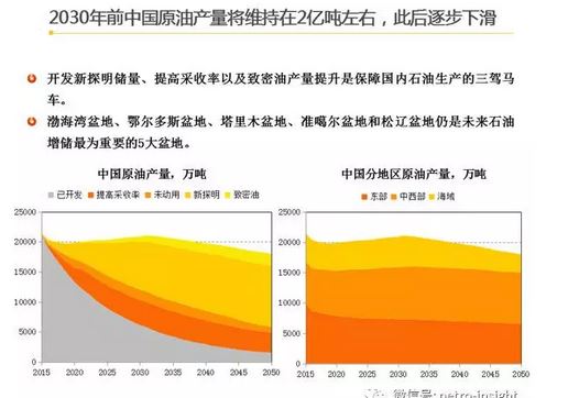 5.中國原油產(chǎn)量在2030年前維持在2億噸水平,之后逐步下滑。2040年前天然氣產(chǎn)量將較快增長,2050年產(chǎn)量在3800億立方米左右。