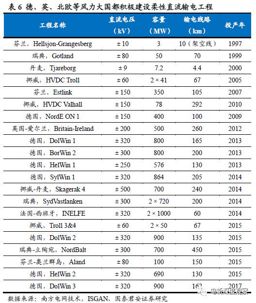 新能源電力上網(wǎng)仍需要柔性直流輸電實現(xiàn)。歐洲的多個國家都已經(jīng)建設(shè)和規(guī)劃了大量的海上風(fēng)電場,其容量都在數(shù)百兆瓦等級,并且已經(jīng)有部分使用了柔性直流輸電技術(shù)實現(xiàn)系統(tǒng)的接入。英國國家電網(wǎng)輸電公共有限公司(NGETplc)規(guī)劃到2025年建設(shè)柔性直流近50條,以鼓勵和促進新能源的發(fā)展。目前德國在建用于海上風(fēng)電接入的柔性直流輸電項目共4項,總?cè)萘考s2600MW。北歐地區(qū)規(guī)劃到2030年通過多端柔性直流(MTDC)實現(xiàn)海上風(fēng)電的接入,柔性直流輸電被認為是最適合的實現(xiàn)手段。