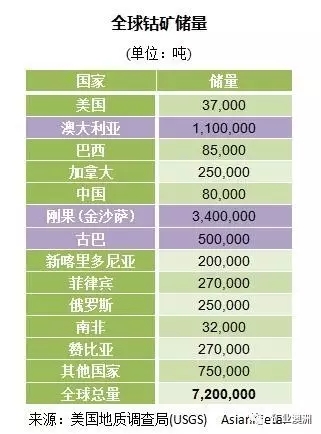 據(jù)美國(guó)地質(zhì)調(diào)查局2015年最新統(tǒng)計(jì),全球已探明陸地鈷資源量約2500萬(wàn)噸,儲(chǔ)量720萬(wàn)噸,儲(chǔ)量高度集中在剛果(金),澳大利亞和古巴。世界鈷資源的分布很不平衡,剛果(金)、澳大利亞和古巴三國(guó)儲(chǔ)量之和就占了全球總儲(chǔ)量的68%。剛果(金)是鈷儲(chǔ)量最豐富的國(guó)家,截至2014年,該國(guó)鈷儲(chǔ)量達(dá)到340萬(wàn)噸,居世界第一位,占全球儲(chǔ)量的45.63%。澳大利亞位居第二,其鈷礦儲(chǔ)量約為120萬(wàn)噸,占全球儲(chǔ)量的16.10%。再次為古巴,其鈷礦儲(chǔ)量約為50萬(wàn)噸,占全球儲(chǔ)量的6.71%。可見(jiàn),全球幾乎一半的鈷礦資源都儲(chǔ)藏于剛果。其后依次為贊比亞、菲律賓27萬(wàn)噸;俄羅斯、加拿大各25萬(wàn)噸;巴西8.5萬(wàn)噸;中國(guó)8萬(wàn)噸;美國(guó)3.7萬(wàn)噸;新喀里多尼亞2萬(wàn)噸等。相對(duì)其他國(guó)家中國(guó)的鈷資源比較豐富,但由于中國(guó)鈷礦資源大多數(shù)來(lái)自伴生礦,其品位不高,可回收利用率低,工藝難度大和生產(chǎn)成本高等,導(dǎo)致中國(guó)鈷資源嚴(yán)重缺乏。