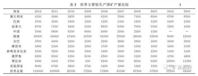 (1)中國(guó)鈷礦資源緊缺。盡管中國(guó)資源量達(dá)8萬(wàn)噸,但遠(yuǎn)遠(yuǎn)少于剛果、澳大利亞等國(guó)家。同時(shí)由于中國(guó)貧礦多、富礦少;共生、伴生礦多、單獨(dú)的鈷礦床少等原因,加上還有不少暫時(shí)不能利用的資源,所以總的來(lái)說(shuō)中國(guó)是一個(gè)鈷礦資源嚴(yán)重缺乏的國(guó)家。