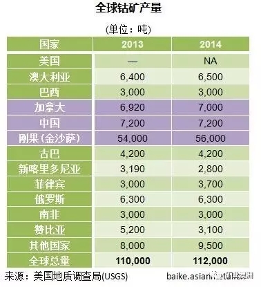 中國(guó)鈷產(chǎn)量呈現(xiàn)出良好的快速增長(zhǎng)勢(shì)態(tài),到2012年產(chǎn)量達(dá)到7,000噸,已成為世界第二大鈷礦生產(chǎn)國(guó)。