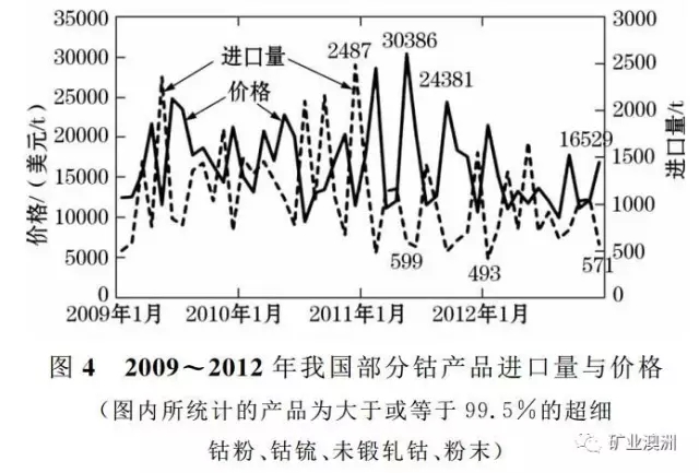根據(jù)中國(guó)有色金屬工業(yè)協(xié)會(huì)鈷業(yè)分會(huì)的統(tǒng)計(jì)資料,對(duì)近4年主要鈷產(chǎn)品進(jìn)出口量與價(jià)格進(jìn)行了對(duì)比與分析。一方面顯示中國(guó)鈷礦生產(chǎn)力的提升緩解了進(jìn)口壓力,減少了國(guó)際貿(mào)易風(fēng)險(xiǎn),另一方面反映出中國(guó)小型鈷生產(chǎn)企業(yè)的惡性競(jìng)爭(zhēng)不利于鈷產(chǎn)業(yè)的健康發(fā)展。