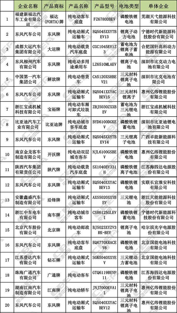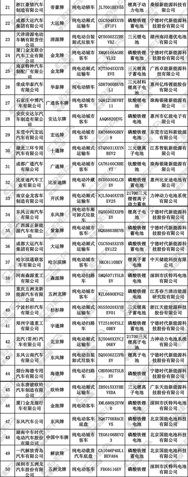 在本批公告中,力神生產(chǎn)的21700三元電池搭載了兩款純電動運輸車,標志著我國21700電池開始新能源汽車上投入應用。此外,不少新能源車企和電池企業(yè)開始發(fā)力,既體現(xiàn)在所申報的純電動車型以及動力電池企業(yè)所配套的純電動車型明顯增多,又體現(xiàn)在本批公告所出現(xiàn)的新面孔。我們對本批公告的車型及配套電池信息進行了統(tǒng)計,總結(jié)有幾大亮點: