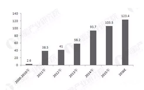 2000-2016年中國電化學(xué)儲能項目累計裝機規(guī)模(單位:MW)