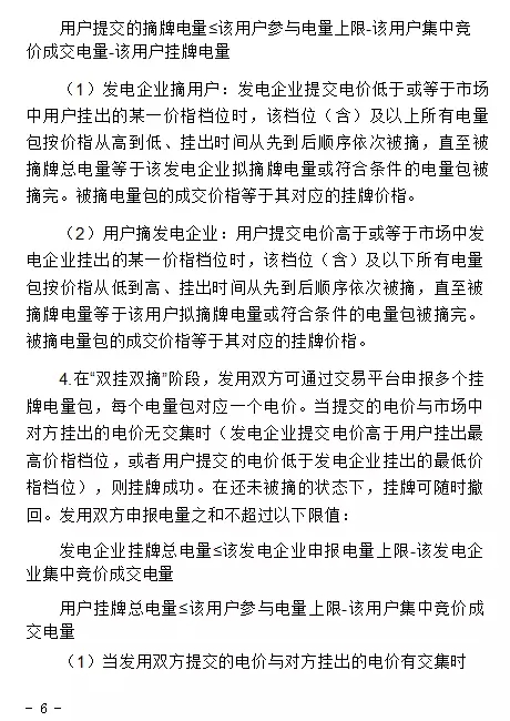 交易方式為雙邊協(xié)商和集中競(jìng)價(jià)。先開(kāi)展年度雙邊協(xié)商交易,再開(kāi)展年度集中競(jìng)價(jià)交易。集中競(jìng)價(jià)交易的出清計(jì)算按邊際出清價(jià)格統(tǒng)一確定交易價(jià)格。其中市外發(fā)電企業(yè)未成交的年度剩余市場(chǎng)化電量將按照集中競(jìng)價(jià)交易的成交出清序列中發(fā)電企業(yè)加權(quán)平均申報(bào)價(jià)差強(qiáng)制出清。