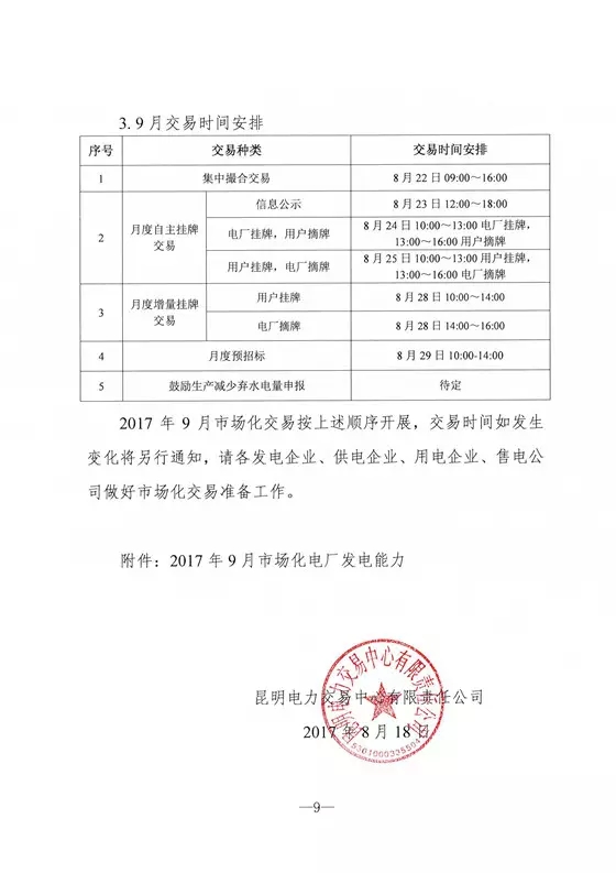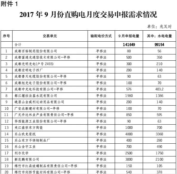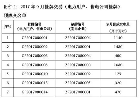 9月掛牌交易(電力用戶、售電公司掛牌)預(yù)成交名單見(jiàn)附件1。