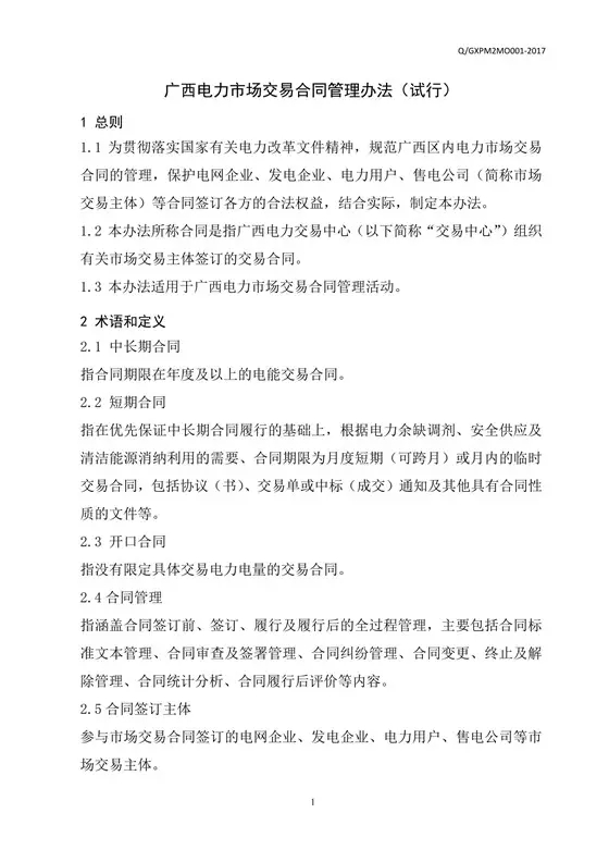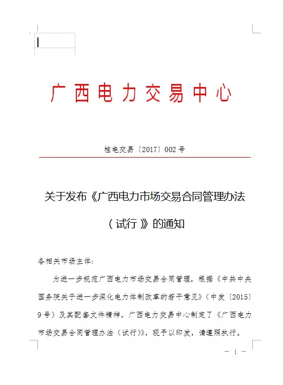 日前廣西電力交易中心發(fā)布了關(guān)于《廣西電力市場(chǎng)交易合同管理辦法(試行)》的通知。具體通知如下: