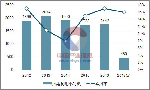 全國(guó)風(fēng)電利用小時(shí)數(shù)及棄風(fēng)率(%)