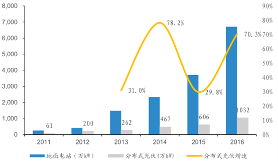 國(guó)家能源局公布了今年一季度光伏發(fā)電數(shù)據(jù),新增裝機(jī)量與 2016 年同期基本持平。其中集中式光伏新增裝機(jī)同比下降 23%,而分布式新增裝機(jī)同比增幅達(dá)到151%。且繼續(xù)呈大幅增長(zhǎng)趨勢(shì)。