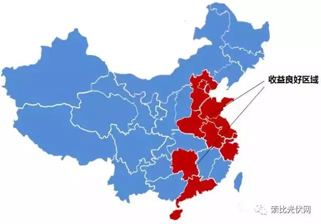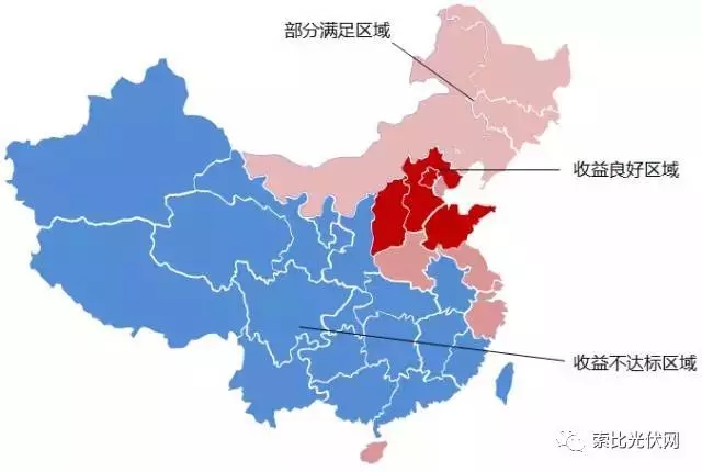 通過查詢各省大工業(yè)用電及商業(yè)用電可以看出,津京冀、山東、浙江、江蘇、上海、安徽、河南、湖南、廣東、海南等電價(jià)相對(duì)較高,都是比較適合做自發(fā)自用、余電上網(wǎng)類項(xiàng)目的,收益地圖見下圖。