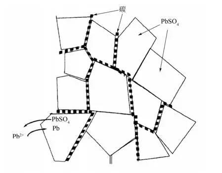 圖:鉛碳電池負(fù)極板碳導(dǎo)電網(wǎng)絡(luò)示意圖