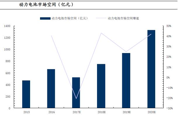 動力電池:需求穩(wěn)增成本下降,17-20市場空間復合增速約33%