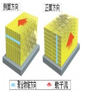 在太陽能電池中,聚合物是一層薄膜。分析報告指出,這些新的“烷基化”聚合物是為了使聚合物鏈能夠與表面呈水平方向疊加而不是垂直,導(dǎo)致載流子(電子和電子空穴)向表面垂直移動而不是平行移動,提高了能量轉(zhuǎn)化效率(如圖所示)。Osaka表示:“方向上的改變將能量轉(zhuǎn)化效率提高到8.2%,之前的非烷基化材料僅為5.5.%。”