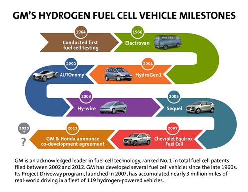 通用汽車的燃料電池源頭可追溯到1964年,當(dāng)時(shí)該公司第一次進(jìn)行燃料電池技術(shù)驗(yàn)證測(cè)試。1966年,通用推出第一款燃料電池車Electrovan。2001年,基于歐寶平臺(tái)的HydroGen1驗(yàn)證車問世。2002年和2003年,Hy-wire和AUTOnomy燃料電池概念車的相繼推出成為通用在燃料電池技術(shù)方面新一輪沖擊的開端。Hy-wire采用的燃料電池功率94千瓦,短時(shí)峰值129千瓦,驅(qū)動(dòng)三相電動(dòng)馬達(dá),可推動(dòng)1,814千克重的車輛以160千米/時(shí)的速度行駛。 2005年,通用汽車以雪佛蘭Traverse為藍(lán)本打造了Sequel燃料電池車。該車燃料電池功率為73千瓦,搭配的鋰離子電池功率65千瓦。功率輸出65千瓦的電動(dòng)馬達(dá)驅(qū)動(dòng)前輪,制動(dòng)系統(tǒng)上的25千瓦輪內(nèi)馬達(dá)驅(qū)動(dòng)后輪,總功率輸出115千瓦。盡管Sequel是軸距3,040 mm、車長(zhǎng)4,994 mm的MPV,但仍然能夠在10秒內(nèi)從靜止加速至60英里/時(shí),續(xù)航里程480千米。Sequel將8千克氣態(tài)氫燃料存儲(chǔ)在三缸碳纖維燃料箱中,壓強(qiáng)達(dá)到700巴(10,000 p.s.i.)。