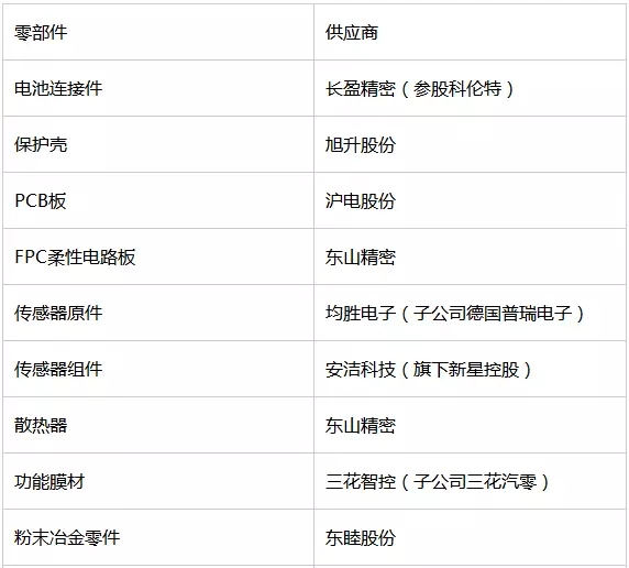 在電池?zé)峁芾硐到y(tǒng)中,散熱器由東山精密公司提供,原材料壓延銅箔、聚脂薄膜由超華科技、晏旺電子提供,散熱系統(tǒng)鋁材中的鋁、鋼由特斯拉二級(jí)供應(yīng)商常鋁股份。在所有其他電池組組件中,功能膜材來(lái)自于中國(guó)公司安潔科技。