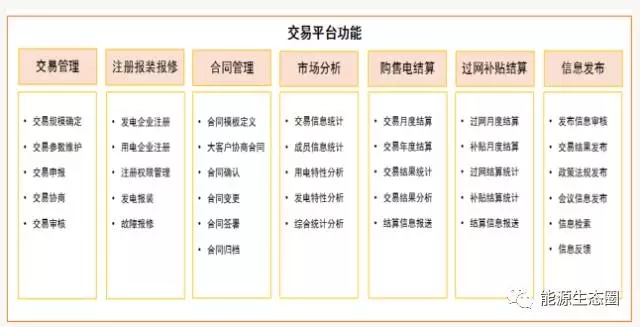 綠色交易平臺主要涵蓋的功能包括注冊報裝報修、交易管理、合同管理、市場分析、購售電結(jié)算、過網(wǎng)補(bǔ)貼結(jié)算以及信息發(fā)布等功能。