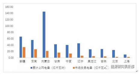 上半年,大型發(fā)電集團(tuán)風(fēng)電上網(wǎng)電量市場化率達(dá)到30%以上的省份有5個,分別為青海、新疆、云南、甘肅和寧夏,市場化率分別達(dá)到了100%、50.5%、47.6%、38.4%和31.8%。