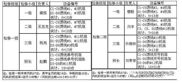 (2)各部門將管理職責繼續(xù)細化,分配至各小組以及個人。下面以設(shè)備管理部發(fā)電主要設(shè)備風力發(fā)電機組為例,按照專業(yè)和小組進行了管理職責劃分。生產(chǎn)現(xiàn)場設(shè)備管理部分為檢修一班和檢修二班,兩個檢修班組各有3個檢修小組組成,管轄設(shè)備按照單雙號進行分配,例如:某一饋線1號風機由檢修一班第一檢修小組負責管理工作,某一饋線2號風機由檢修二班第一小組負責管理工作,以此類推。因為風的不確定性,在內(nèi)對崗位的對標工作中存在發(fā)電量等數(shù)據(jù)的對標,所以,設(shè)備沒有按照片區(qū)來劃分。
