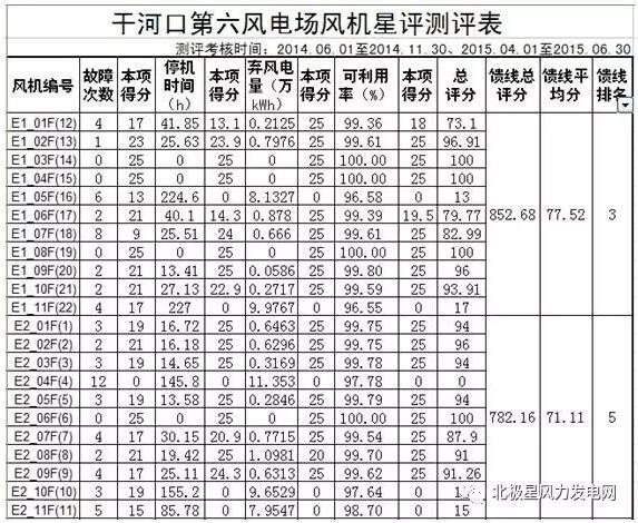 (2)每條饋線風力發(fā)電機組小指標測評表