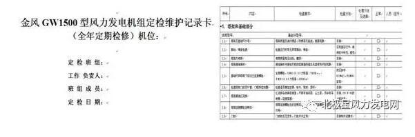 (2)將維護檢修工作模板化,先后完成了巡檢、定檢工作記錄卡,將檢修項目和檢修標準逐項羅列,避免漏項、工作標準不清晰等問題;完成了設(shè)備技術(shù)臺賬的編制,對每臺風力發(fā)電機組的主要設(shè)備規(guī)格進行登記,并對每臺風力發(fā)電機組開展的工作進行詳細的記錄。
