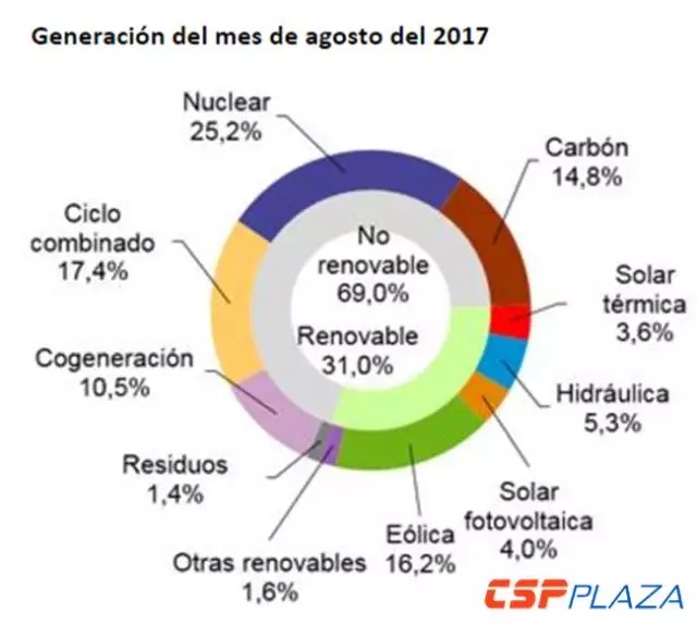 中國(guó)儲(chǔ)能網(wǎng)訊:據(jù)最新消息,西班牙8月份光熱發(fā)電量占該國(guó)當(dāng)月總發(fā)電量的3.6%,較6、7月份有所下滑。