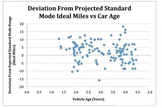 我們看一下日產(chǎn)Leaf車型的情況,該車型面向市場較早,已經(jīng)積累了一些數(shù)據(jù):