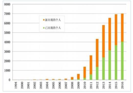 專利投入快速增長,處于技術(shù)成長期。分析一種技術(shù)的專利申請數(shù)量及專利申請人數(shù)量的年度變化趨勢,可以判斷該技術(shù)處于生命周期的何種階段。通過觀察全球石墨烯專利數(shù)量與發(fā)明人相關(guān)性,以及新增發(fā)明人數(shù)量,可以看到石墨烯相關(guān)專利技術(shù)正快速成長,正產(chǎn)業(yè)發(fā)展的初期階段,是開展產(chǎn)業(yè)布局的戰(zhàn)略機(jī)遇期。