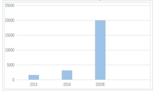 中國石墨烯市場規(guī)模預(yù)測 單位:萬美元)