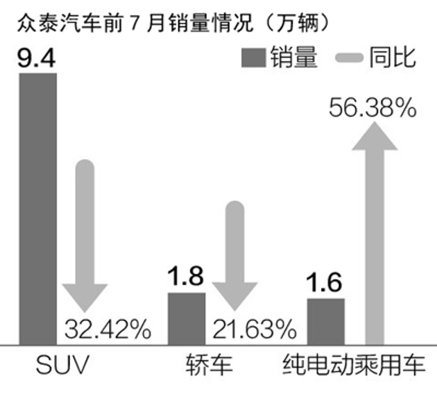 公開(kāi)資料顯示,從2008年開(kāi)始,眾泰便著手布局新能源汽車業(yè)務(wù),成立了新能源汽車研究院。與在傳統(tǒng)車領(lǐng)域飽受“皮尺部”調(diào)侃的境況不同,近年來(lái),眾泰的新能源汽車銷量穩(wěn)步增長(zhǎng),累計(jì)實(shí)現(xiàn)銷量超過(guò)7萬(wàn)輛,占全國(guó)新能源純電動(dòng)汽車總體銷量的18%。今年1~7月,在SUV和轎車銷量同比大幅下滑的情況下,眾泰純電動(dòng)乘用車卻同比增長(zhǎng)56.38%至1.6萬(wàn)輛,在中國(guó)新能源汽車市場(chǎng)中位于銷量前列。