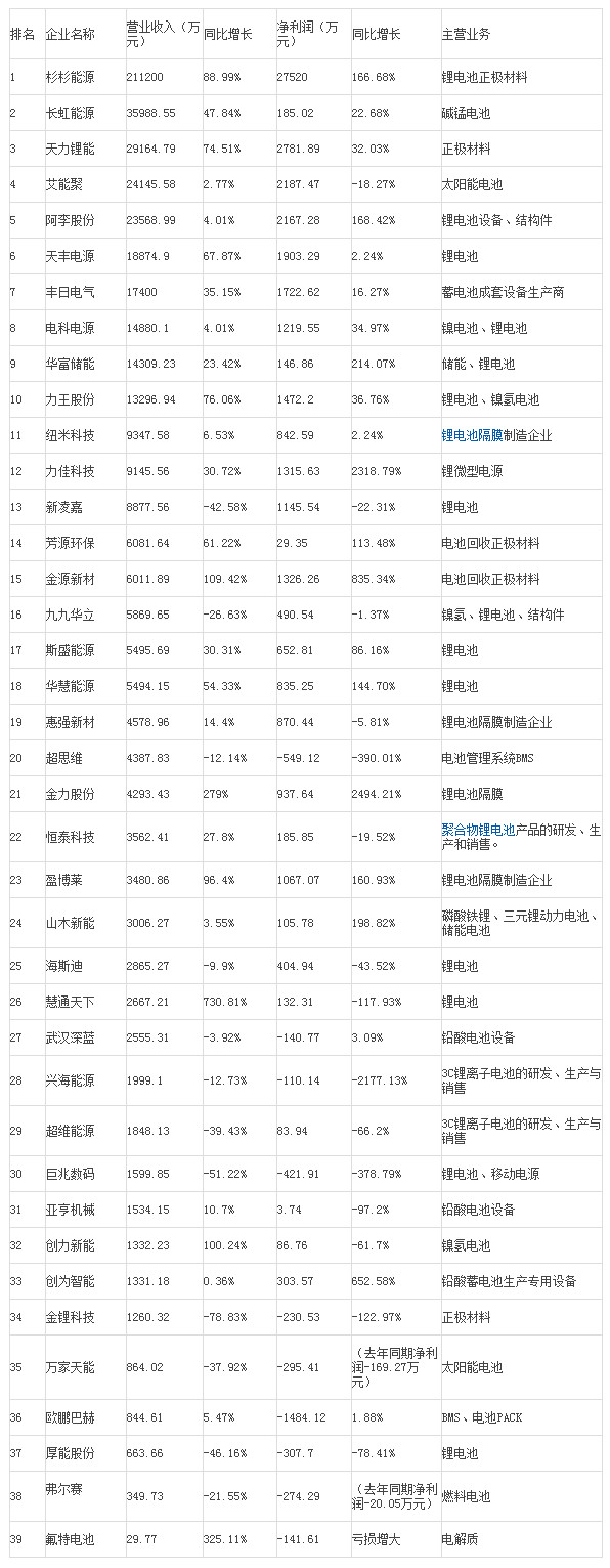 附:39家鋰電池企業(yè)營(yíng)業(yè)收入排行榜。