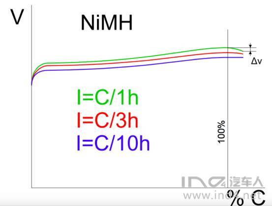 鎳氫電池在1C的倍率下充電還有一個(gè)有意思的現(xiàn)象,當(dāng)電池快被充滿時(shí),電池電壓會(huì)有一個(gè)小幅的下降(5~10mV)。必要時(shí)可以通過這個(gè)特性來識(shí)別電池是否滿電。