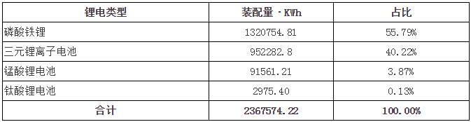三.國內(nèi)新能源汽車各配裝類型鋰電裝機量