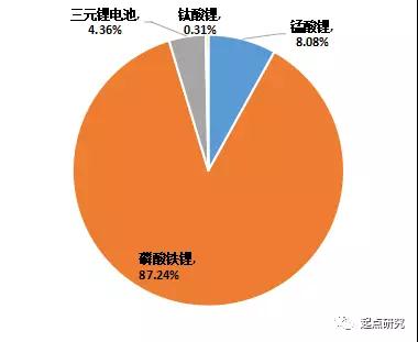 其中磷酸鐵鋰電池裝機量的新能源客車市場占比87.24%,錳酸鋰電池裝機量的新能源客車市場占比8.08%,三元鋰電池裝機量的新能源客車市場占比4.36%,鈦酸鋰電池裝機量的新能源客車裝機量市場占比為0.31%