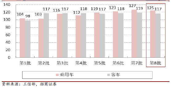 目錄車型數(shù)量略有下滑:工信部9月1日如期公布了第8批目錄,本批目錄共95家企業(yè)的273個車型入選,環(huán)比略有3%的下滑。目前已發(fā)布的前8 批目錄累計已超過去年全年水平。
