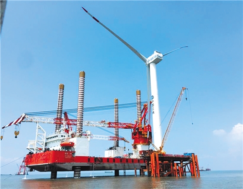 《經濟日報》記者近日在福建省福清市江陰半島東南側興化灣海面上采訪時看到,兩臺大型風機已經吊裝完畢,周邊數(shù)個施工平臺旁,大型打樁船、浮吊正在緊張作業(yè)。