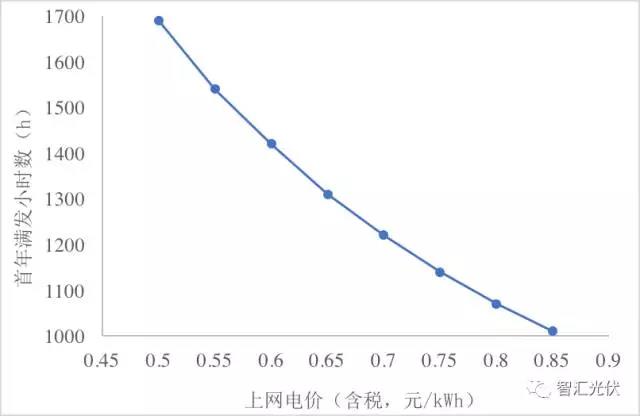 圖:不同電價(jià)水平下的首年滿發(fā)小時(shí)數(shù)推算(ic=8%)