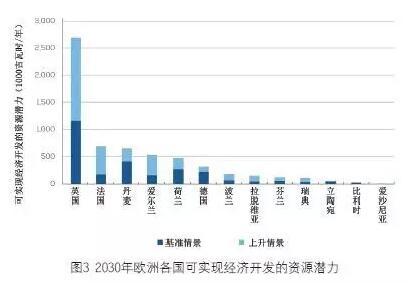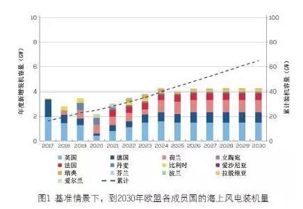 在基準(zhǔn)情景下,裝機(jī)主要來(lái)自于北海周邊國(guó)家,包括英國(guó)、丹麥、荷蘭、德國(guó)和法國(guó)等。而在上升情景下,愛(ài)爾蘭、波蘭、拉脫維亞以及立陶宛也會(huì)有新增裝機(jī)。