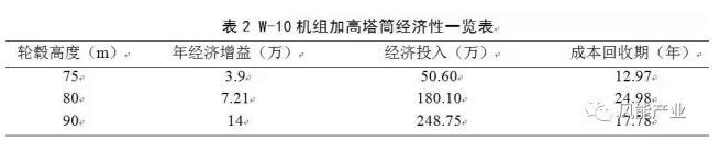 在機(jī)組安全運行的基礎(chǔ)上,對機(jī)組加高塔筒技改經(jīng)濟(jì)性估算如表2所示,其中經(jīng)濟(jì)增益按照上網(wǎng)電量0.6元/千瓦時計算,經(jīng)濟(jì)投入為基于項目經(jīng)驗的參考值。
