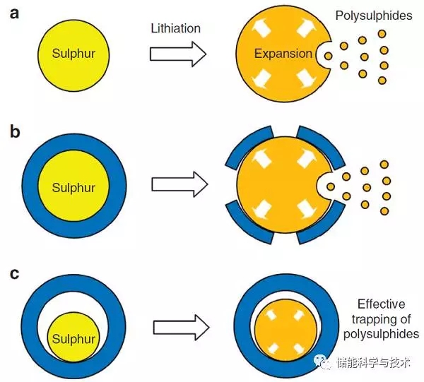 5、高比容量鋰硫電池中的空心碳包覆硫正極材料