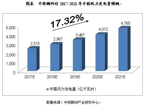 中投顧問對2017-2021年中國風力發(fā)電量預測