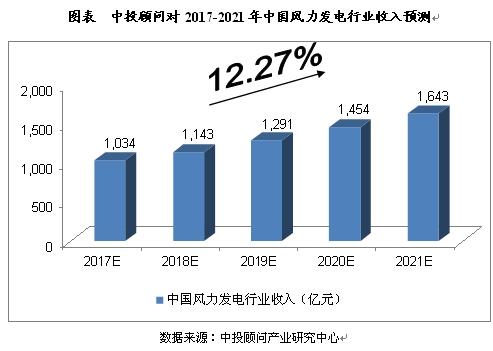 中投顧問對2017-2021年中國風力發(fā)電行業(yè)收入預測