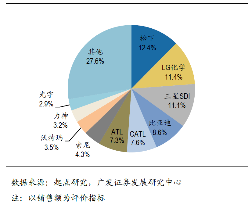 中國儲能網(wǎng)訊:日前從廣發(fā)證券股份有限公司發(fā)布的研究報告獲悉:在全球十大鋰電池企業(yè)中,日本有兩家,韓國有兩家,剩下全部是中國企業(yè),其中比亞迪是中國的龍頭。根據(jù)起點(diǎn)研究統(tǒng)計,日本的松下和索尼占了全球16.7%的銷售額,韓國的LG化學(xué)和三星SDI占了22.5%,其余的絕大多數(shù)由中國生產(chǎn)。