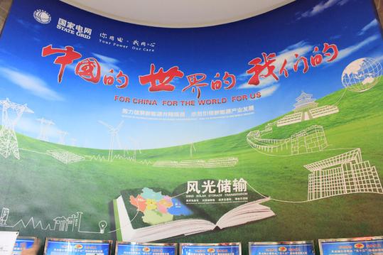 一行人首先來到了國家風光儲輸示范工程展示廳,廳中的一處大牌子立刻映入眼簾,上面的九個紅色大字醒目震撼:“中國的、世界的、我們的”。近年來,國家不斷出臺鼓勵新能源發(fā)展的相關(guān)政策,在我國能源結(jié)構(gòu)中,風力發(fā)電、光伏發(fā)電等所占的地位日益重要。然而,風能、太陽能受天氣情況影響大,隨機性強,難以提供連續(xù)穩(wěn)定的電能輸出,這成為制約新能源大規(guī)模開發(fā)利用的瓶頸。國家風光儲輸示范工程的成功投運,為無數(shù)致力于新能源發(fā)展的各界人士,指出了一個破解瓶頸的光明之路。示范工程是“中國的”,在這一繁復(fù)浩大的示范工程中,擁有大量我國自主創(chuàng)新的技術(shù)及理論。展示廳中的各種模型,如風機模型、電池儲能示范系統(tǒng)、逆變器模型、光伏斜單軸跟蹤系統(tǒng)等等,均是在示范工程中得到推廣應(yīng)用的,很多都是這一領(lǐng)域先進的技術(shù)代表。然而示范工程也是“世界的”,這些技術(shù)課題及難題被世界所矚目,屬于世界范疇的。據(jù)介紹,工程采用世界首創(chuàng)的建設(shè)思路和技術(shù)路線,建成了國內(nèi)首個智能源網(wǎng)友好型風電廠、國內(nèi)容量最大的功率調(diào)節(jié)型光伏電站、世界上規(guī)模最大的多類型化學(xué)儲能電站,在世界范圍內(nèi)首創(chuàng)了新能源發(fā)電的風光儲輸聯(lián)合運行模式。