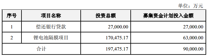 公告顯示,本次鋰電池隔膜項(xiàng)目總投資合計(jì)為17.05億元,擬投入募集資金不超過(guò)6.3億元,主要用于生產(chǎn)設(shè)備的購(gòu)置及生產(chǎn)基地的建設(shè)。項(xiàng)目實(shí)施主體為湖南中鋰新材料科技有限公司(下稱(chēng)“中鋰科技”),項(xiàng)目建設(shè)期為2 年,達(dá)產(chǎn)后可形成年產(chǎn)3.2億平方米鋰離子電池隔膜的生產(chǎn)能力。