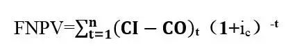 3.財務凈現(xiàn)值(FNPV)系指按設定的折現(xiàn)率(一般采用基準收益率ic)計算的項目計算期內凈現(xiàn)金流量的現(xiàn)值之和,可按下式計算:
