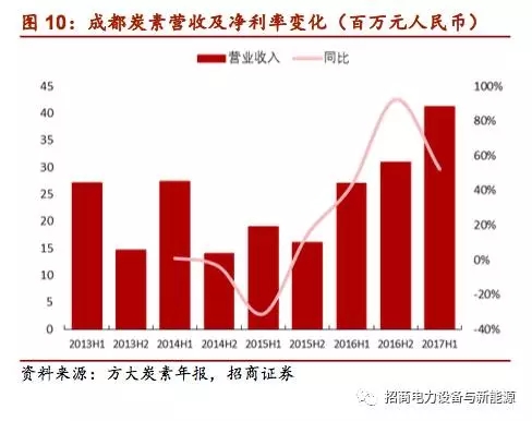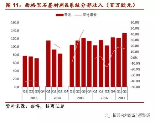 受需求拉動(dòng)上半年價(jià)格上漲,企業(yè)陸續(xù)開工,收入增加:上半年國內(nèi)光伏裝機(jī)大超預(yù)期,同時(shí)由于“領(lǐng)跑者”等計(jì)劃的推動(dòng)使得單晶占比持續(xù)上升,單晶組件需求增加,推動(dòng)用于單晶長晶爐的進(jìn)口等靜壓石墨從去年同期的7-8萬元/噸左右上漲至目前的10-12萬元/噸左右,國內(nèi)外企業(yè)的等靜壓石墨開工率開始提升,如國內(nèi)等靜壓石墨生產(chǎn)企業(yè)成都炭素同比收入大幅增加;德國企業(yè)西格里石墨材料分部收入實(shí)現(xiàn)小幅增長,其中來自光伏市場(chǎng)特種石墨的收入從2015年的不到10%上升至2016年的11%。